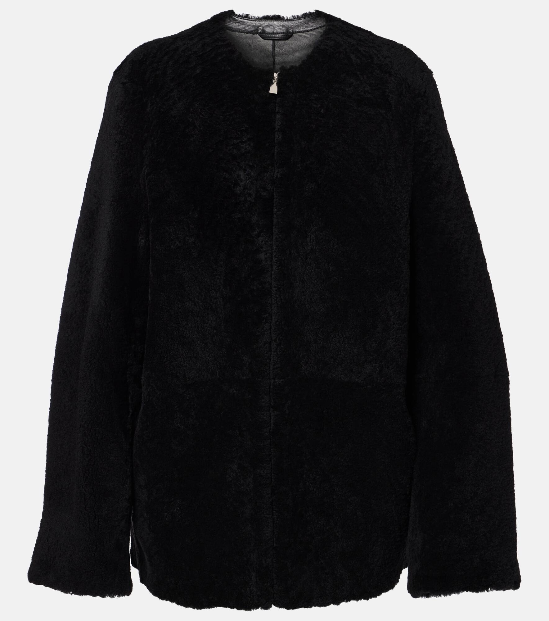 Define your dress code with styles from Toteme, a Stockholm-based brand dedicated to creating a modern uniform. Crafted from warm and supple lamb shearling, you'll wear this jacket for seasons to come. Product Details - Material: 100% shearling - Care instructions: specialist clean - Made in Turkey - Designer color name: Black - Pockets: side slit pockets - Closure: zipper fastening - Lining: 100% leather - Item number: P00993372 Size & Fit - True to size - Designed for a loose fit - Non-stretchy fabric - Falls below the hip - The model seen in the picture is 178cm-5'10" and wearing a size DT 34