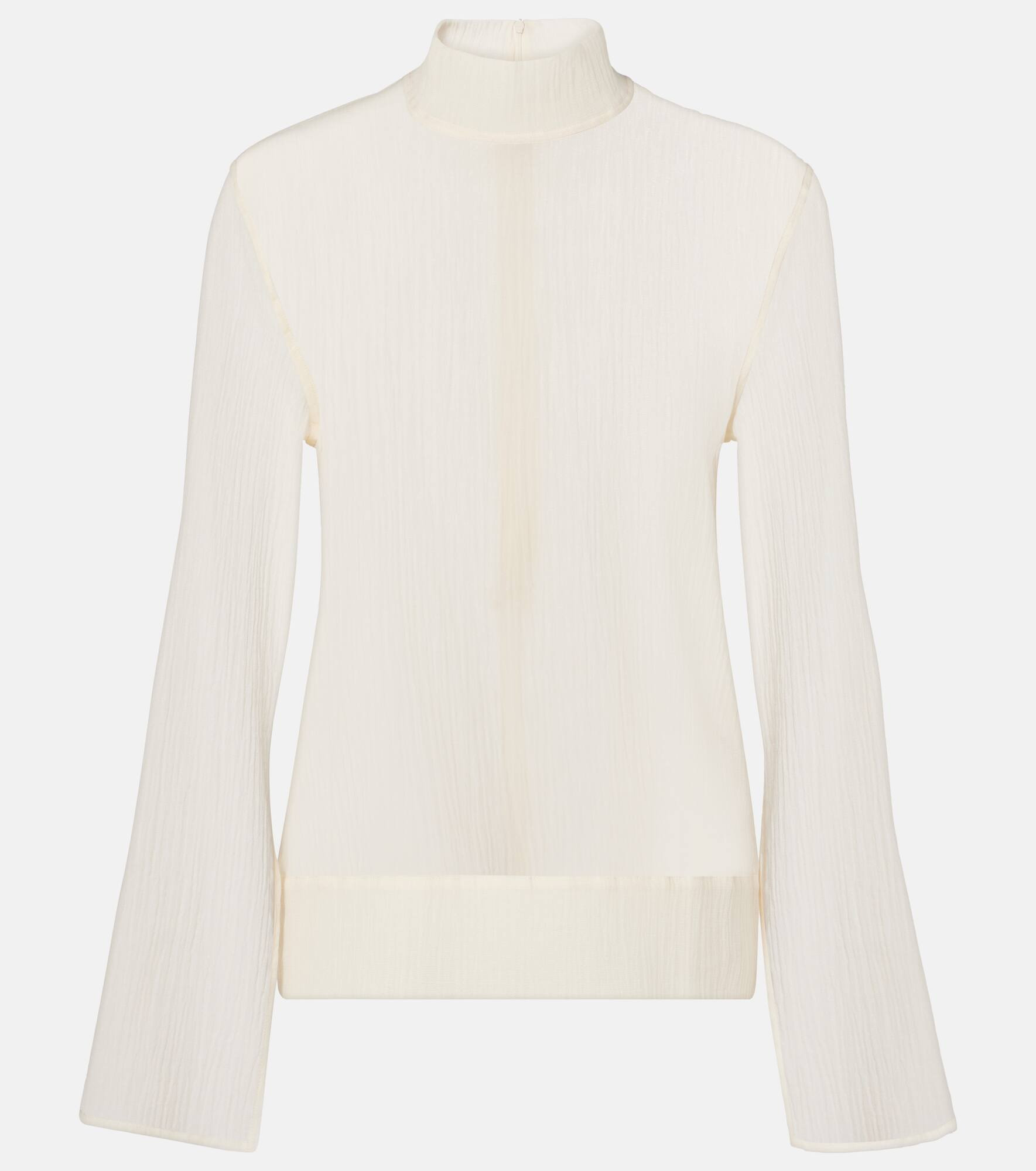Cotton and silk-blend crepon turtleneck blouse Ecru