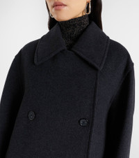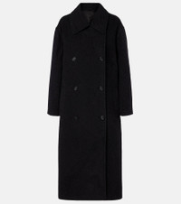 Define your dress code with styles from Toteme, a Stockholm-based brand dedicated to creating a modern uniform. The Shield double-breasted coat is made from a wool-blend with hints of cashmere. Product Details - Material: 70% wool, 25% polyamide, 5% cashmere - Care instructions: dry clean - Made in Romania - Color: black - Designer color name: Charcoal Melange - Item color: black - Lining: 100% viscose - Closure: double-breasted (six buttons) - Pockets: side slit pockets - Item number: P01136599 Size & Fit - True to size - Dropped shoulders - Oversized - Non-stretchy fabric - The model seen in the picture is 178cm-5'10" and wearing a size DE 34