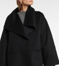 An iconic style from Totême, the Signature coat is hand-stitched from double-faced and sustainably-sourced black wool and cashmere fibers. It has an oversized, cocoon silhouette with a draped collar, dropped shoulders and an open front. Product Details - Pockets: patch pockets - Closure: open front - Designer color name: Black - Lining: 47% viscose, partially lined, 53% polyester - Care instructions: dry clean - Material: 10% cashmere, 90% wool - Item number: P00611370 Size & Fit - True to size - Dropped shoulders - Oversized - Non-stretchy fabric - slit length 52cm-20.5" - The model seen in the picture is 178cm-5'10" and wearing a size XS