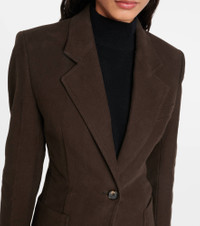Product Details - Material: 100% cotton - Care instructions: dry clean - Made in Portugal - Designer color name: Espresso - Lining: 100% viscose - Closure: single-breasted (one button) - Pockets: patch pockets - Item number: P00895519 Size & Fit - Fits small to size - we recommend trying one size larger - Shoulder pad inserts - Cinched waist - Non-stretchy fabric - Falls to the hip - The model seen in the picture is 178cm-5'10" and wearing a size DT 36