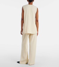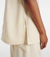 Define your dress code with styles from Toteme, a Stockholm-based brand dedicated to creating a modern uniform. Woven to a straight silhouette and finished with side slits, this striped tank top is perfect for layering or pairing with the matching pants for a spotless look. Product Details - Material: 96% viscose, 4% linen - Care instructions: hand wash - Made in China - Designer color name: Ecru - Item color: ivory - Closure: concealed zipper - Item number: P01040520 Size & Fit - True to size - Designed for a loose fit - Non-stretchy fabric - Falls below the hip - The model seen in the picture is 178cm-5'10" and wearing a size DE 34