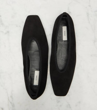 Stockholm-based brand Toteme is dedicated to creating a modern uniform. These ballet flats have the brand-signature minimalist silhouette and are made from suede. Product Details - Upper: leather (suede) - Lining: leather - Sole: leather insole and sole - Toe shape: square toe - Made in Italy - Includes: shoe box, dust bag - Designer color name: Black 001 - Item color: black - Contains non-textile parts of animal origin - Item number: P01041927 Size & Fit - True to size - Half sizes please take the next size up - European sizes