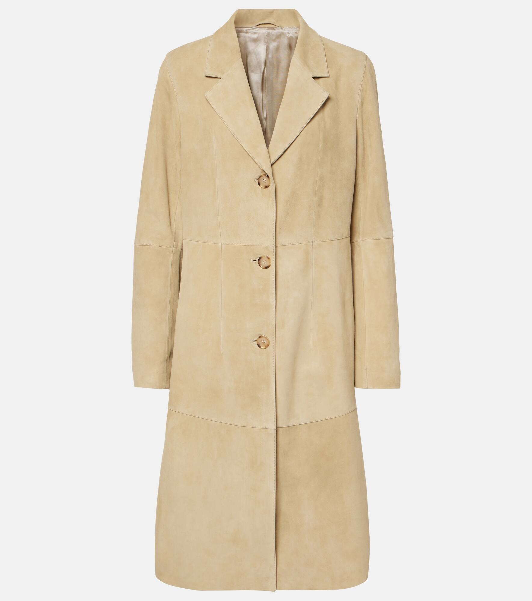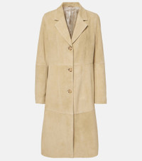 Characterized by immaculate lines and expert craft, this coat conveys Toteme's vision of minimalism. It's made from panels of supple suede with a buttoned front and a slightly cinched waistline for an elegant fit. Product Details - Material: 100% leather - Care instructions: specialist clean - Made in Turkey - Designer color name: Desert - Closure: double-breasted buttoned front - Pockets: slant pockets - Lining: 100% viscose - Item number: P01040482 Size & Fit - True to size - Cinched waist - Non-stretchy fabric - The model seen in the picture is 178cm-5'10" and wearing a size DT 34
