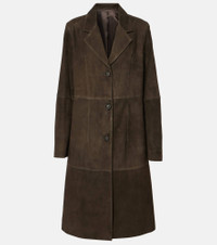Characterized by immaculate lines and expert craft, this coat conveys Toteme's vision of minimalism. It's made from panels of supple suede with a buttoned front and a slightly cinched waistline for an elegant fit. Product Details - Material: 100% leather - Care instructions: specialist clean - Made in Turkey - Designer color name: Pepper - Lining: 100% viscose - Closure: double-breasted buttoned front - Pockets: slant pockets - Item number: P01040586 Size & Fit - True to size - Cinched waist - Non-stretchy fabric - The model seen in the picture is 178cm-5'10" and wearing a size DT 34