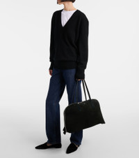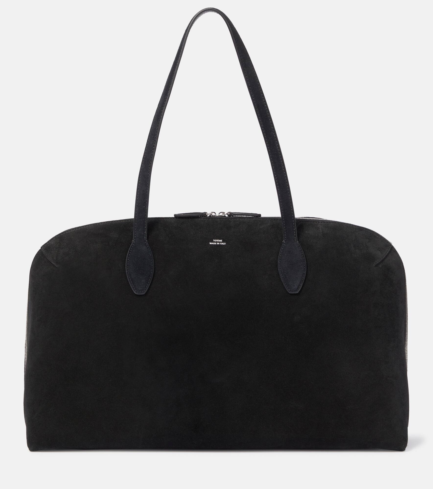 Product Details - Material: leather - Lining: suede - Made in Italy - Designer color name: Black - Closure: zipped top - Internal details: internal slot pockets, internal zipped pocket - Hardware color: silver - Includes: dust bag - Top handles - Item number: P01024013 Size & Fit - Height 28cm-11" - Width 45cm-17.5" - Max. depth 15,5cm-6" - Length of handles 58cm-23"