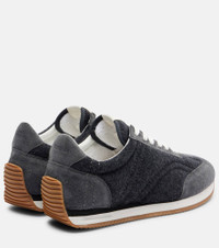 Define your dress code with styles from Toteme, a Stockholm-based brand dedicated to creating a modern uniform. These retro-inspired sneakers feature suede trims, sturdy rubber soles, and logo branding at the heels. Product Details - Upper: fabric, leather (suede) - Lining: fabric, leather - Sole: leather insole, rubber sole - Toe shape: almond toe - Made in Portugal - Includes: shoe box, dust bag - Designer color name: Grey Melange - Item color: gray - Item number: P01100369 Size & Fit - True to size - Half sizes please take the next size up - European sizes - 2cm-1" platform (size EU 38) - 3cm-1" wedge heel (size EU 38)