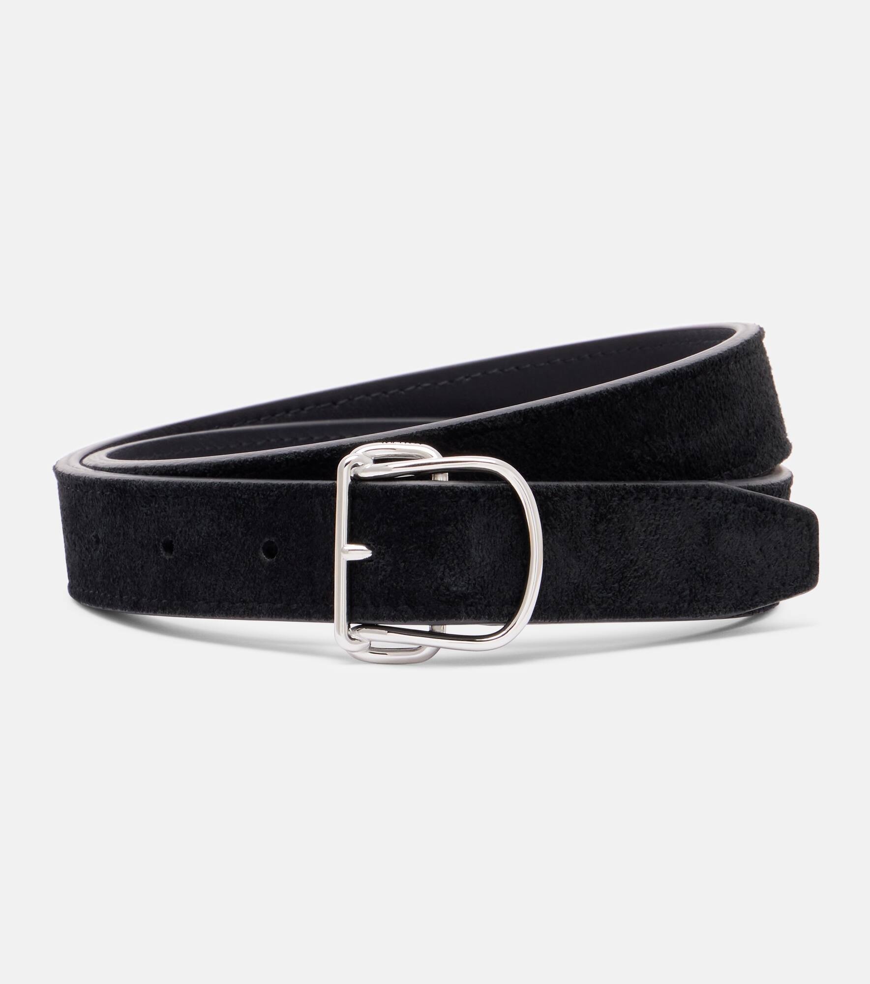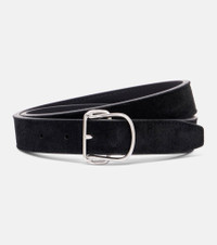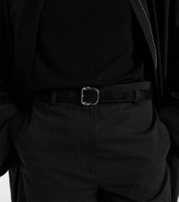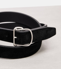 Circle back to staple accessories like the Swirl belt from Toteme. Italian-made from buttery suede to a 4cm width, this style is finished with a sculptural buckle inspired by the intertwining shapes of the brand's jewelry pieces. Product Details - Material: calf leather (suede) - Lining: leather - Made in Italy - Designer color name: Black 001 - Item color: black - Includes: dust bag, box - Item number: P01023894 Size & Fit - Width 2,5cm-1" - Buckle width 3,8cm-1.5"