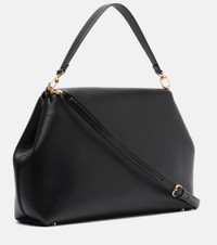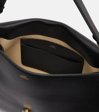 The T-Lock Medium tote bag from Toteme is a spacious, unstructured design with a curved top. Crafted in Italy from leather, the style is finished with silver-toned metal hardware and comes with a detachable, adjustable shoulder strap. Product Details - Material: calf leather - Lining: suede - Made in Italy - Designer color name: Black - Item color: black - Hardware color: gold - Detachable top handle, Detachable, adjustable shoulder strap - Internal details: internal slot pockets, single compartment - Closure: turn-lock fastening - Includes: dust bag - Item number: P01093287 Size & Fit - Height 27cm-10.5" - Width 40cm-15.5" - Depth 10cm-4" - Length of handles 48cm-19" - Adjustable shoulder strap - Min. length shoulder strap 79cm-31" - Max. length shoulder strap 90cm-35.5"