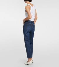 Toteme's streamlined approach will ensure the Twisted Seam jeans become the core of your edit. Made of organic cotton denim, this mid-rise straight style is characterized by signature twisted side seams and cropped cuffs. Product Details - Care instructions: machine wash at 30 degrees - Closure: zipper fly, button fastening - Material: 100% cotton - Pockets: five pockets - belt loops - Made in Italy - Item number: P00825868 Size & Fit - True to size - Mid-weight material - Non-stretchy fabric - Slim-leg - High-rise - The model seen in the picture is 178cm-5'10" and wearing a size 26