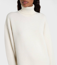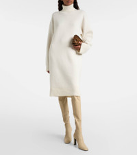 Define your dress code with styles from Toteme, a Stockholm-based brand dedicated to creating a modern uniform. This turtleneck sweater dress is double-knitted from a soft wool and cashmere blend and features a straight fit silhouette. Product Details - Material: 53% wool, 43% cashmere, 4% polyamide - Care instructions: hand wash - Made in China - Designer color name: Milk - Item color: white - Collar: turtleneck - Item number: P01102025 Size & Fit - True to size - Dropped shoulders - Designed for a loose fit - Slightly stretchy fabric - The model seen in the picture is 178cm-5'10" and wearing a size XS