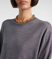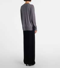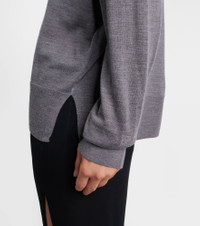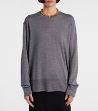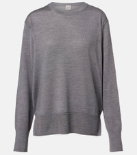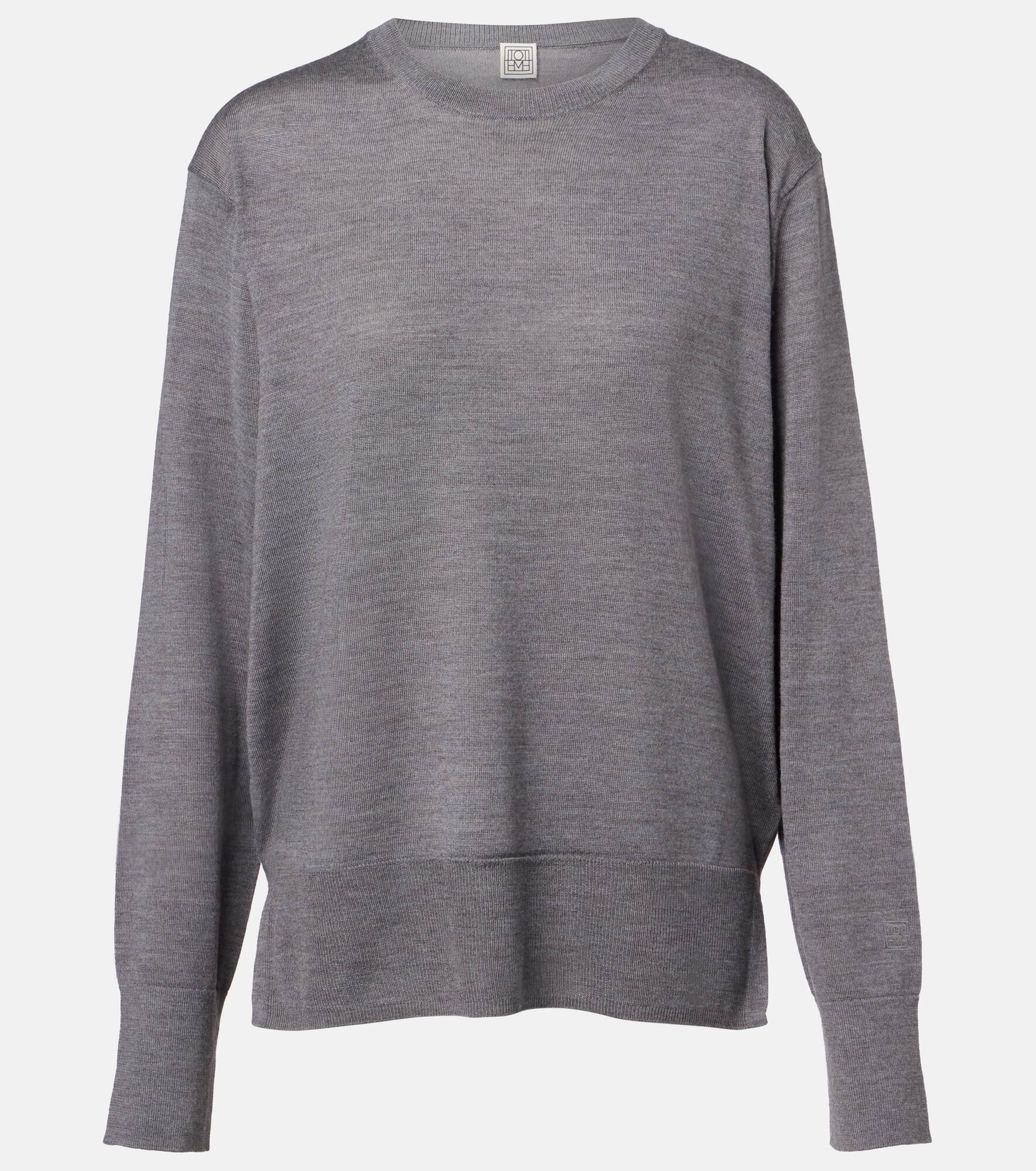 Define your dress code with styles from Toteme, a Stockholm-based brand dedicated to creating a modern uniform. This crewneck sweater is expertly knitted from soft wool and silk and is complete with ribbed trims. Product Details - Material: 75% wool, 25% silk - Care instructions: hand wash - Made in China - Designer color name: Grey Melange - Item color: gray - Trim: 60% wool, 19% silk, 18% polyamide, 3% elastane - Collar: crewneck - Side slits - Cuff: ribbed - Hem: ribbed - Item number: P01101986 Size & Fit - True to size - Dropped shoulders - Designed for a loose fit - Stretchy fabric - Falls below the hip - The model seen in the picture is 178cm-5'10" and wearing a size XS