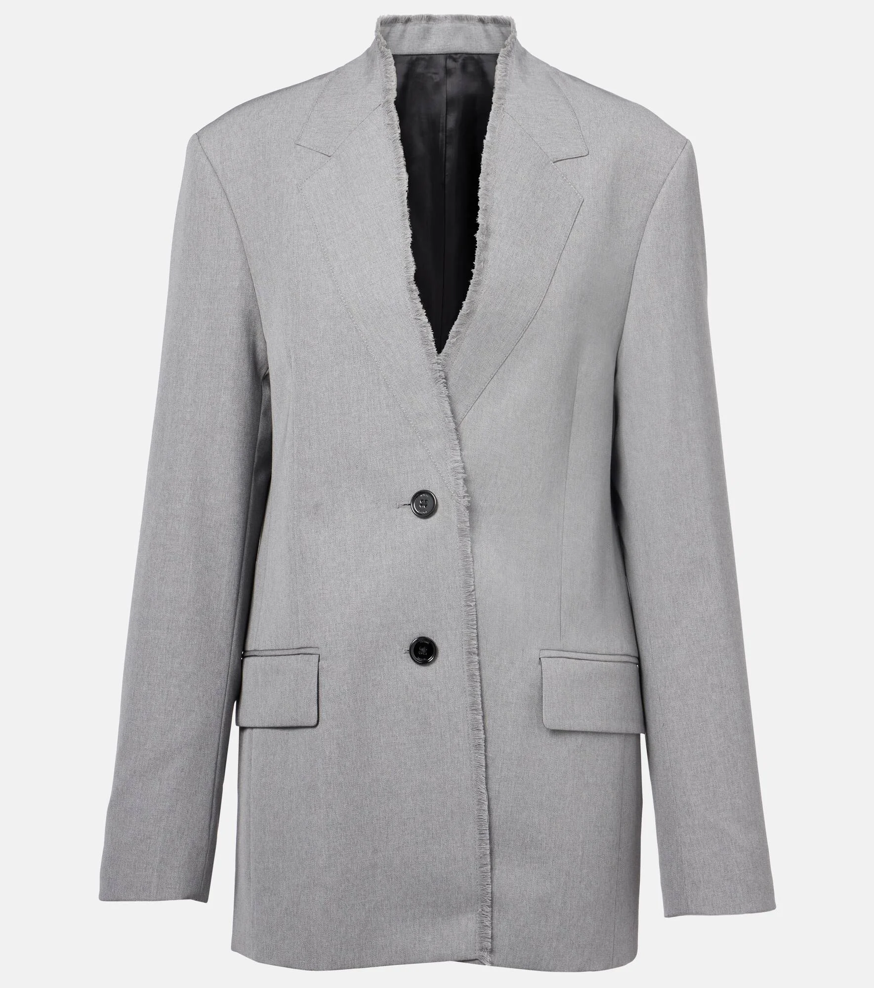 Define your dress code with styles from Toteme, a Stockholm-based brand dedicated to creating a modern uniform. This blazer is tailored from wool into a single-breasted silhouette with patch pockets, notched lapels, and fringed edges. Product Details - Material: 100% wool - Care instructions: dry clean - Made in Romania - Designer color name: Pale Grey Melange - Item color: gray - Contains non-textile parts of animal origin - Interlining: 100% viscose - Blazer - Closure: single-breasted (two buttons) - Pockets: flap pockets - Vent: single - Buttoned sleeves - Item number: P01075202 Size & Fit - True to size - For a closer fit, we recommend taking one size down - Shoulder pad inserts - Designed for a loose fit - Non-stretchy fabric - Falls below the hip - The model seen in the picture is 178cm-5'10" and wearing a size DE 34