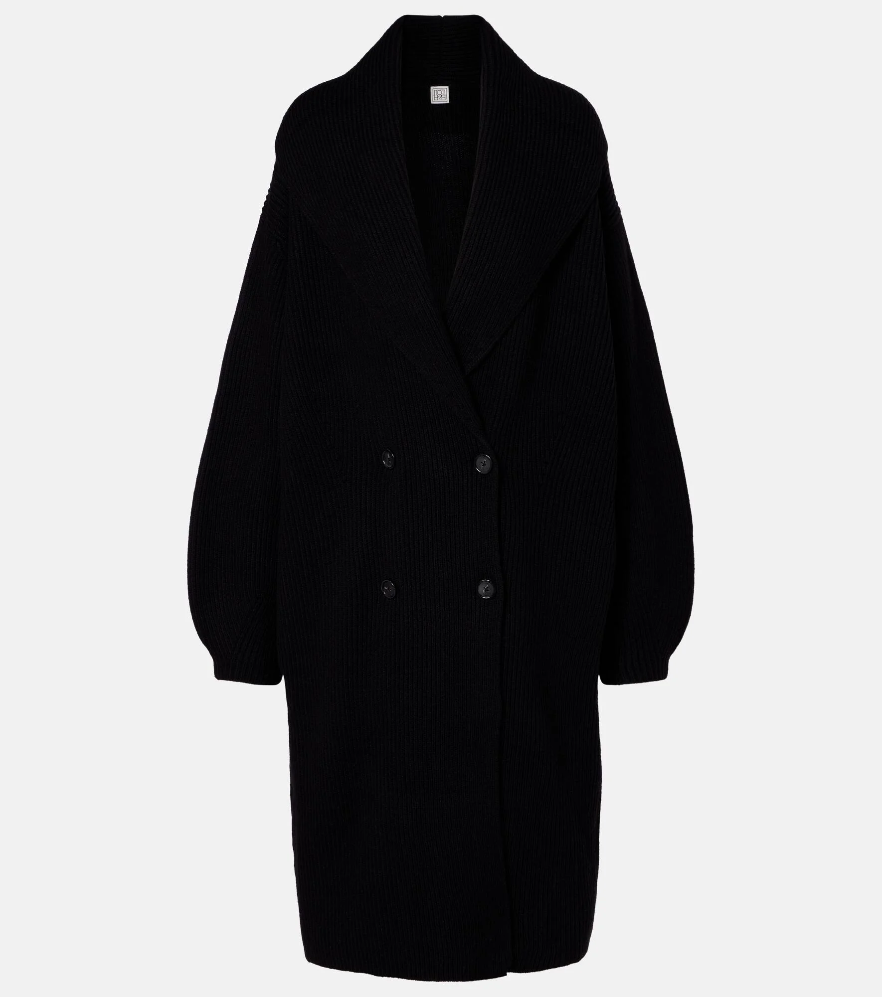 Define your dress code with styles from Toteme, a Stockholm-based brand dedicated to creating a modern uniform. This black cardigan is expertly knitted from a wool blend and defined by a shawl collar and a double-breasted silhouette. Product Details - Material: 94% wool, 6% polyamide - Care instructions: dry clean - Made in China - Color: black - Designer color name: Black - Pockets: side slit pockets - Closure: double-breasted (four buttons) - Item number: P01136610 Size & Fit - Fits large to size - we recommend trying one size smaller - Dropped shoulders - Oversized - Stretchy fabric - Falls below the hip - The model seen in the picture is 178cm-5'10" and wearing a size XXS