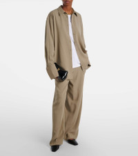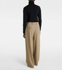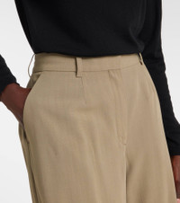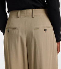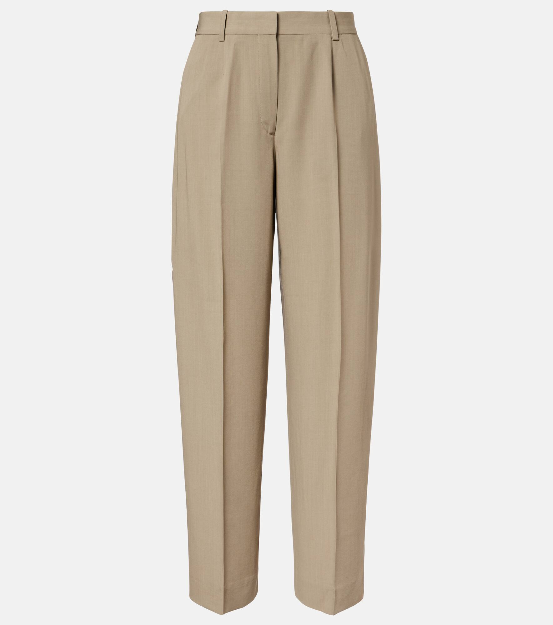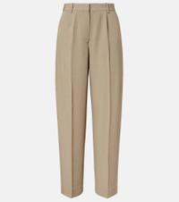 Define your dress code with styles from Toteme, a Stockholm-based brand dedicated to creating a modern uniform. Made from a soft wool blend, these tailored pants come in a wide-leg silhouette accented by elegant pleats. Product Details - Material: 60% viscose, 40% wool - Care instructions: dry clean - Made in Portugal - Designer color name: Taupe - Item color: beige - Closure: zipper fly, button and hook fastenings - Belt loops - Pockets: side slit pockets, back pockets - Item number: P01101997 Size & Fit - True to size - Non-stretchy fabric - Wide-leg - The model seen in the picture is 178cm-5'10" and wearing a size DE 34