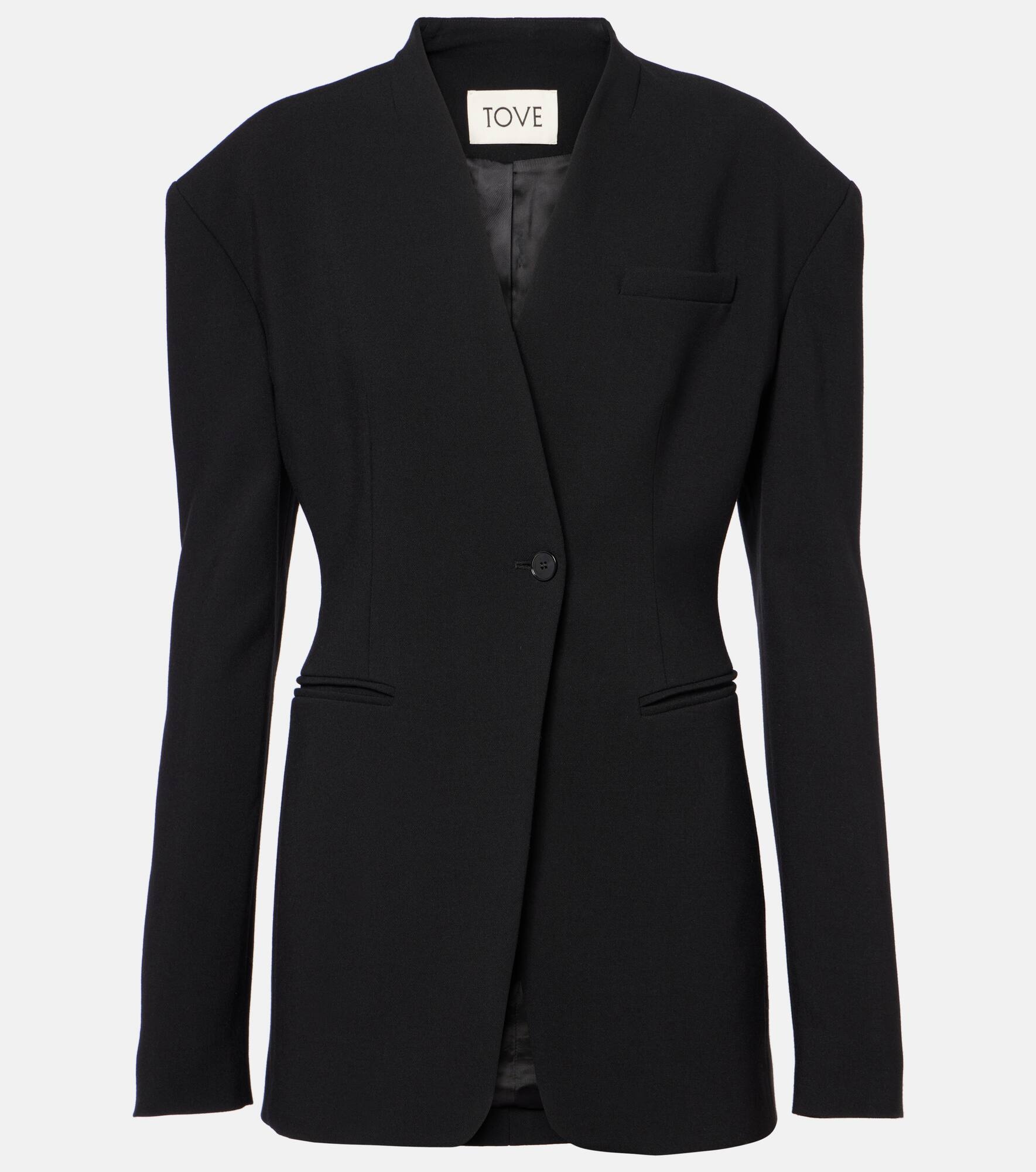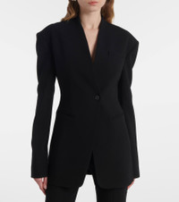 Product Details - Material: 58% viscose, 38% wool, 4% elastane - Care instructions: dry clean - Made in Portugal - Designer color name: Black - Pockets: slit pockets - Shoulder pads - Lining: 100% viscose - Closure: button fastening - Item number: P01020354 Size & Fit - True to size - Shoulder pad inserts - Cinched waist - Non-stretchy fabric - Falls below the hip - The model seen in the picture is 178cm-5'10" and wearing a size FR 36