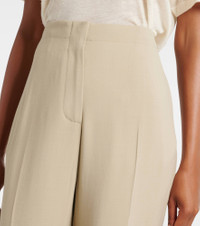 Product Details - Material: 55% viscose, 45% wool - Care instructions: do not wash - Made in Portugal - Designer color name: Sand - Closure: zipper fly, button and hook fastenings - Pockets: side slit pockets, back pockets - Item number: P00959985 Size & Fit - True to size - Non-stretchy fabric - Wide-leg - High-waisted - The model seen in the picture is 178cm-5'10" and wearing a size FR 36