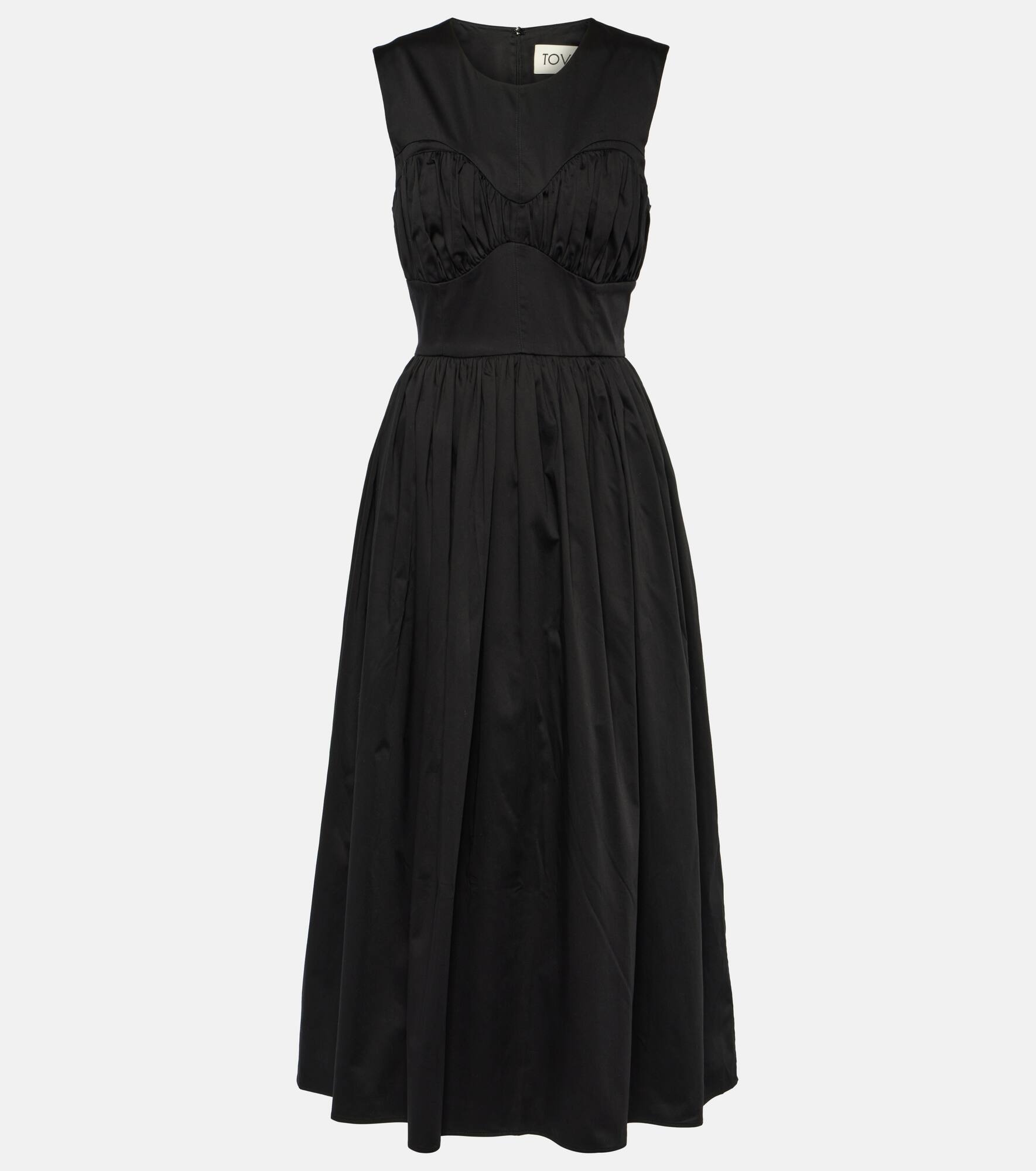 Delphine gathered cotton-blend midi dress