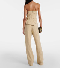 Product Details - Material: 100% linen - Care instructions: machine wash at 30 degrees - Made in Portugal - Designer color name: Stone - Lining: 65% polyester, 35% cotton - Closure: zipped back - Item number: P00933244 Size & Fit - True to size - Strapless - Cinched waist - Non-stretchy fabric - Falls to the hip - The model seen in the picture is 178cm-5'10" and wearing a size FR 36