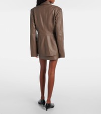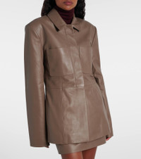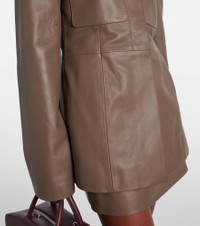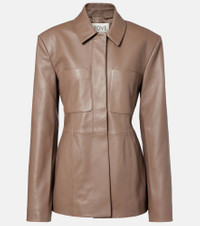 Made from supremely soft leather with a polished finish, the Magda jacket from Tove is cut to a form-fitting silhouette with a cinched waist, patch pockets, and tonal stitching. Product Details - Material: 100% leather - Care instructions: specialist clean - Made in the UK - Designer color name: Taupe - Item color: gray - Lining: 100% viscose - Closure: concealed buttoned front - Pockets: breast pockets - Item number: P01070922 Size & Fit - Fits large to size - we recommend trying one size smaller - Shoulder pad inserts - Straight fit - Non-stretchy fabric - Falls below the hip - The model seen in the picture is 178cm-5'10" and wearing a size FR 34