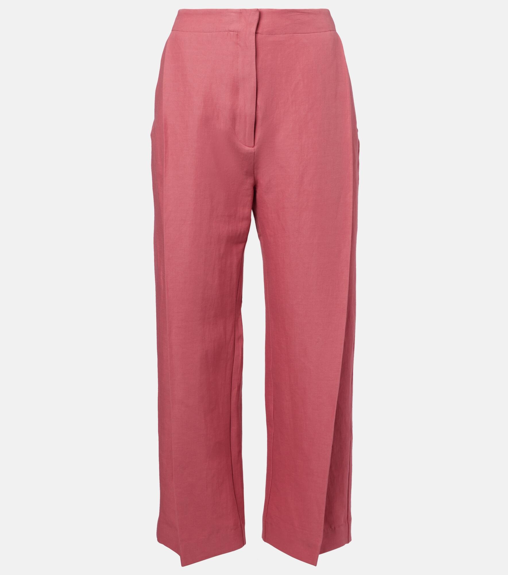 Product Details - Material: 58% linen, 37% cotton, 5% elastane - Care instructions: machine wash at 30 degrees - Made in Portugal - Designer color name: Cherry - Item color: pink - Lining: 57% viscose, 43% polyester - Closure: zipper fly, button and hook fastenings - Pockets: side slit pockets, back pockets - Item number: P01033016 Size & Fit - True to size - Non-stretchy fabric - Wide-leg - High-waisted - The model seen in the picture is 178cm-5'10" and wearing a size FR 36
