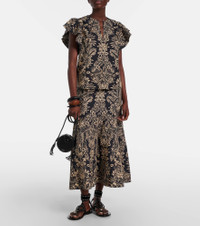 The Clarisse skirt is cut from cotton poplin to a high-rise, midi-length silhouette. In true Ulla Johnson style, this design stands out with a distinctive and tactile botanical print. Product Details - Material: 100% cotton - Care instructions: machine wash at 30 degrees - Made in India - Designer color name: Noir Flora - Item color: black, beige - Closure: concealed zipped side - Item number: P01122414 Size & Fit - True to size - Non-stretchy fabric - The model seen in the picture is 178cm-5'10" and wearing a size US 4