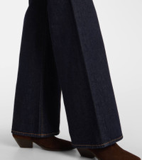 Crafted from pure cotton denim, the Delphine jeans from Ulla Johnson feature a classic wide-leg silhouette and are finished with contrast topstitching and gold-toned hardware. Product Details - Material: 100% cotton - Care instructions: machine wash cold - Made in the USA - Designer color name: Tigris - Item color: blue - Pockets: back pockets - Closure: zipper fly, button fastening - Chain-link detail - Item number: P01100395 Size & Fit - Fits small to size - we recommend trying one size larger - Non-stretchy fabric - Wide-leg - High-rise - The model seen in the picture is 178cm-5'10" and wearing a size 27