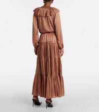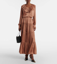 Gaelle tiered silk satin maxi skirt