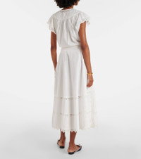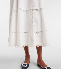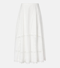 Crafted from soft cotton, the Lucia midi skirt from Ulla Johnson features a flowing, A-line silhouette. The elegant design is complete with tonal ribbon embroidery and delicate tulle appliques for a romantic silhouette. Product Details - Material: 100% cotton - Care instructions: dry clean - Made in India - Designer color name: Pristine - Item color: white - Material II: 100% nylon - Embroidery: 100% polyester - Closure: zipped side - Unlined - Item number: P01078708 Size & Fit - True to size - Non-stretchy fabric - The model seen in the picture is 178cm-5'10" and wearing a size US 4
