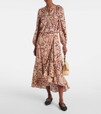 Ulla Johnson grew up traveling extensively with her archaeologist parents, and she regularly draws on these rich memories for inspiration. Made from breezy cotton-blend material, the Sabina maxi skirt is a printed piece with a faux wrap silhouette. Product Details - Material: 66% cotton, 34% viscose - Care instructions: hand wash - Made in Indonesia - Designer color name: Amaranthus - Item color: beige, burgundy - Lining: 100% cotton - Closure: zipped side - Partially lined - Hem: uneven - Item number: P01078689 Size & Fit - True to size - Non-stretchy fabric - High-waisted - The model seen in the picture is 178cm-5'10" and wearing a size US 4