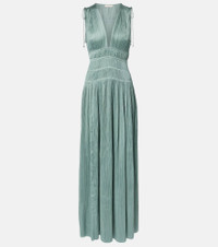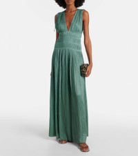 Ulla Johnson creates wanderlust-inspiring pieces full of worldly flair. Crafted from satin plisse for an elegant, fluid drape, the Tasneem gown features a shirred, cinching waist and plunging V-neckline. Product Details - Material: 100% polyester - Care instructions: dry clean - Made in China - Designer color name: Sea Glass - Item color: blue - Collar: V-neck - Item number: P01122428 Size & Fit - True to size - Cinched waist - Non-stretchy fabric - The model seen in the picture is 178cm-5'10" and wearing a size US 4
