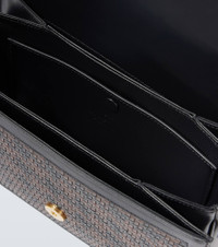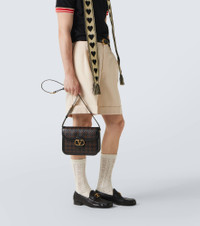 Topped with signature logo detailing, the 9TO5 shoulder bag is expertly woven from leather into a striking houndstooth design. At once iconic and understated, Valentino Garavani's VLogo carries the Maison's legacy of elegance. Product Details - Material: leather - Lining: leather - Made in Italy - Designer color name: Nero/Dark Brown - Item color: black, brown - Closure: magnetic fastening - Adjustable shoulder strap - Color of strap: black - Hardware color: gold - Includes: dust bag - Item number: P01041297 Size & Fit - Height 19cm-7.5" - Width 25cm-10" - Depth 6,5cm-2.5" - Adjustable shoulder strap - Min. length shoulder strap 75cm-29.5" - Max. length shoulder strap 118cm-46.5"