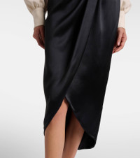 Embrace timeless elegance with this piece from Valentino. Crafted from silk, this midi skirt is designed to sit low on the hips and features a charming asymmetrical hem. Product Details - Material: 100% silk - Care instructions: dry clean - Made in Italy - Designer color name: Nero - Item color: black - Closure: concealed zipped back - Hem: uneven - Item number: P01107928 Size & Fit - True to size - Non-stretchy fabric - Sits low on the hips - The model seen in the picture is 178cm-5'10" and wearing a size IT 40