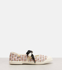 The Bay By Bay sneakers from Valentino Garavani blend the ease of a sneaker with the elegance of ballet flats. Crafted from tweed with a checked motif, this pair is finished with bow closures and VLogo detailing. Product Details - Upper: fabric - Lining: leather, fabric - Sole: fabric insole, rubber sole - Toe shape: round toe - Made in Italy - Includes: dust bag, shoe box - Designer color name: Cipria-Verde Acqua/Ivory/Ivory - Item color: multicolor - Item number: P01062519 Size & Fit - True to size - European sizes - 2cm-1" platform (size EU 38) - 3cm-1" wedge heel (size EU 38)