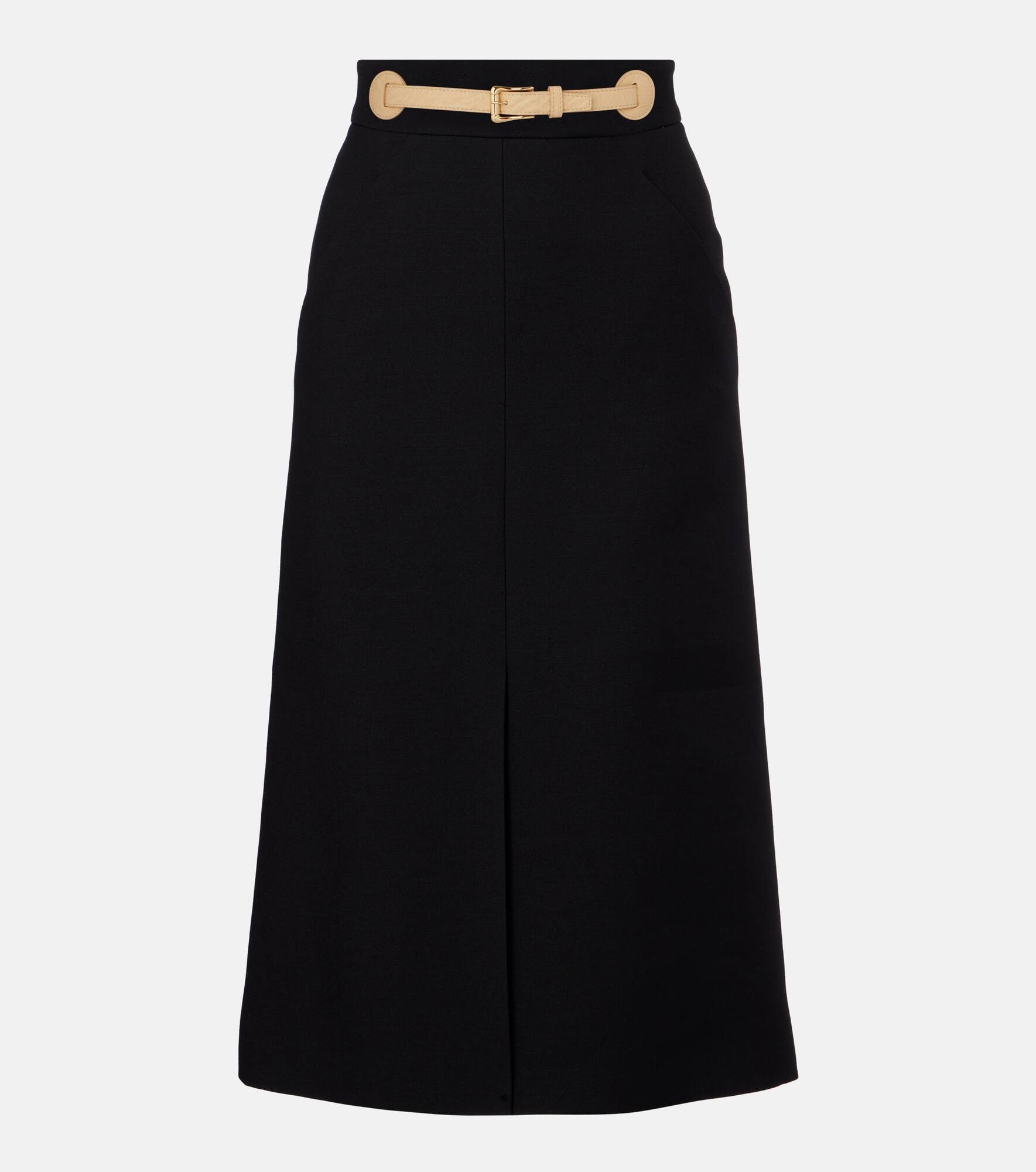 Make an elegant impression at your next board meeting in this skirt from Valentino. The midi design is crafted from a blend of wool and silk and is complete with a contrasting belted detail. Product Details - Material: 65% wool, 35% silk - Care instructions: dry clean - Made in Italy - Designer color name: Nero/Betulla - Item color: black, beige - Lining: 100% silk - Details: 100% leather - Contains non-textile parts of animal origin - Hardware color: gold - Closure: zipped back - Item number: P01059886 Size & Fit - True to size - Non-stretchy fabric - High-waisted - slit length 31,0cm-12" - The model seen in the picture is 178cm-5'10" and wearing a size IT 40