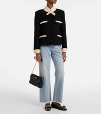 Turn to Valentino for refined ensembles defined by exceptional quality. Crafted from wool-blend tweed, this jacket showcases pastel-hued trims and charming bow details that add sophistication to the look. Product Details - Material: 97% wool, 3% polyamide - Care instructions: dry clean - Made in Italy - Designer color name: Nero - Item color: black, white - Trim: 65% wool, 35% silk - Lining: 74% acetate, 26% silk - Closure: concealed zipped front - Pockets: patch pockets - Item number: P01090178