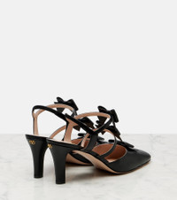 As one of Italy’s most esteemed couture maisons, Valentino Garavani is synonymous with craftsmanship, creativity, and uniqueness. The Bowow leather slingback pumps feature 75mm heels and elegant ribbon details adorning the uppers. Product Details - Upper: leather - Lining: leather - Sole: leather insole, leather and rubber sole - Toe shape: round toe - Made in Italy - Includes: dust bags, shoe box - Designer color name: Nero - Item color: black - Hardware color: gold - Slingback strap - Item number: P01061830 Size & Fit - Fits slightly large to size - we recommend trying a half size smaller - European sizes - 7,5cm-3" heel (size EU 38)