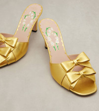 The most established Italian Maison de Couture, Valentino Garavani has become a symbol of crafting excellence, creativity, and uniqueness. Made in Italy from gold-toned metallic leather, the Bowow mules are complete with two bows across their toe straps. Product Details - Upper: leather - Lining: leather - Sole: leather insole and sole - Toe shape: square open toe - Made in Italy - Includes: shoe box, dust bags - Designer color name: Old Golg - Item color: gold - Item number: P01061839 Size & Fit - Fits slightly large to size - we recommend trying a half size smaller - Slightly narrow at the toe - European sizes - 7,5cm-3" heel (size EU 38)