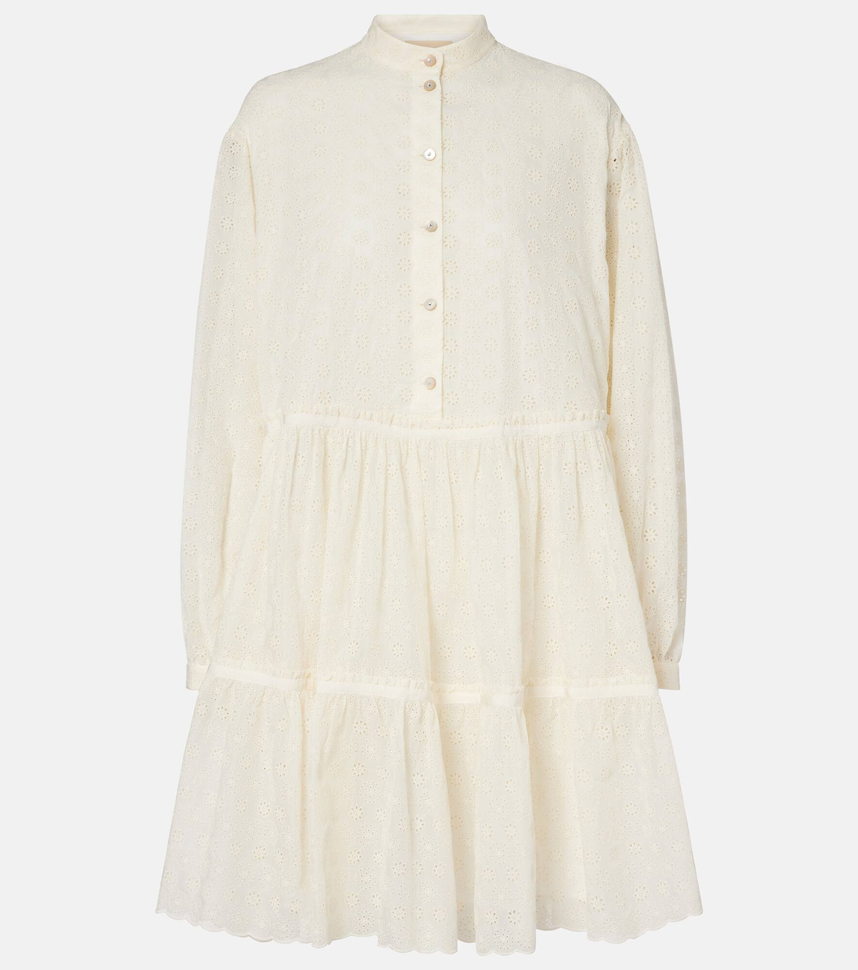 This shirt dress by Valentino is crafted from pure cotton and features a delicate scalloped hem and a buttoned front. The mini silhouette is finished with a band collar and floral broderie anglaise. Product Details - Material: 100% cotton - Care instructions: dry clean - Made in Italy - Designer color name: Avorio - Item color: white - Lining: 100% cotton - Contains non-textile parts of animal origin - Closure: buttoned placket - Collar: band - Cuff: one button - Hem: scalloped - Item number: P01060171 Size & Fit - True to size - Dropped shoulders - Designed for a loose fit - Non-stretchy fabric - The model seen in the picture is 178cm-5'10" and wearing a size IT 40