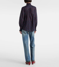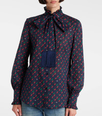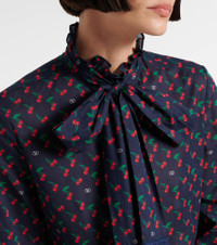 This shirt by Valentino is crafted from lightweight cotton muslin, fully adorned with the whimsical Cherryfic print. The shirt is finished with an oversized bow detail and a buttoned front, combining romantic charm with elegant refinement. Product Details - Material: 100% cotton - Care instructions: dry clean - Made in Italy - Designer color name: Navy/Cherry - Item color: blue - Closure: buttoned front, self-ties - Item number: P01059582 Size & Fit - True to size - Designed for a loose fit - Non-stretchy fabric - Falls below the hip - The model seen in the picture is 178cm-5'10" and wearing a size IT 40