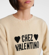This sweater from Valentino is primed to become your new everyday favorite. Expertly knitted from soft virgin wool, this crewneck style features a jacquard Chez Valentino detailing with embroidered heart motifs on the front. Product Details - Material: 100% virgin wool - Care instructions: dry clean - Made in Italy - Designer color name: Betulla/Nero - Item color: beige, black - Embroidery: 100% silk - Details: 100% polyester - Collar: crewneck - Hem: ribbed - Cuff: ribbed - Item number: P01059827 Size & Fit - True to size - Straight fit - Falls below the hip - The model seen in the picture is 178cm-5'10" and wearing a size XS