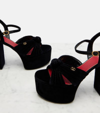 Trust Valentino Garavani to deliver elegant designs that seamlessly transition from day to night. Made from soft velvet, the Crasher platform sandals are set on 125mm block heels and finished with subtle VLogo hardware. Product Details - Upper: velvet - Lining: leather - Sole: leather insole and sole - Color: black - Toe shape: round open toe - Made in Italy - Includes: shoe box, dust bag - Designer color name: Nero - Item color: black - Hardware color: gold - Closure: buckle-fastening ankle strap - Item number: P01130249 Size & Fit - True to size - European sizes - 12,5cm-5" heel - 5,5cm-2" platform