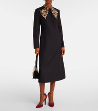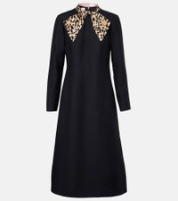 Embellished leopard-print wool and silk-blend midi dress Black