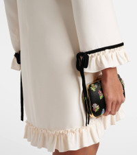 Embellished cape-effect ruffled wool and silk-blend crepe mini dress White