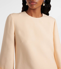 Valentino's signature Crepe Couture fabric – a luxurious wool and silk blend – provides structure and a beautiful drape. This minidress is finished with pleated georgette ruffles at the sleeves and a back zip closure for an elevated touch. Product Details - Material: 65% wool, 35% silk - Care instructions: do not wash - Made in Italy - Designer color name: Betulla - Item color: yellow - Material II: 100% silk - Lining: 100% silk - Closure: zipper, hook fastening - Includes: dust bag - Item number: P01060169 Size & Fit - True to size - Designed for a loose fit - Non-stretchy fabric - The model seen in the picture is 178cm-5'10" and wearing a size IT 40
