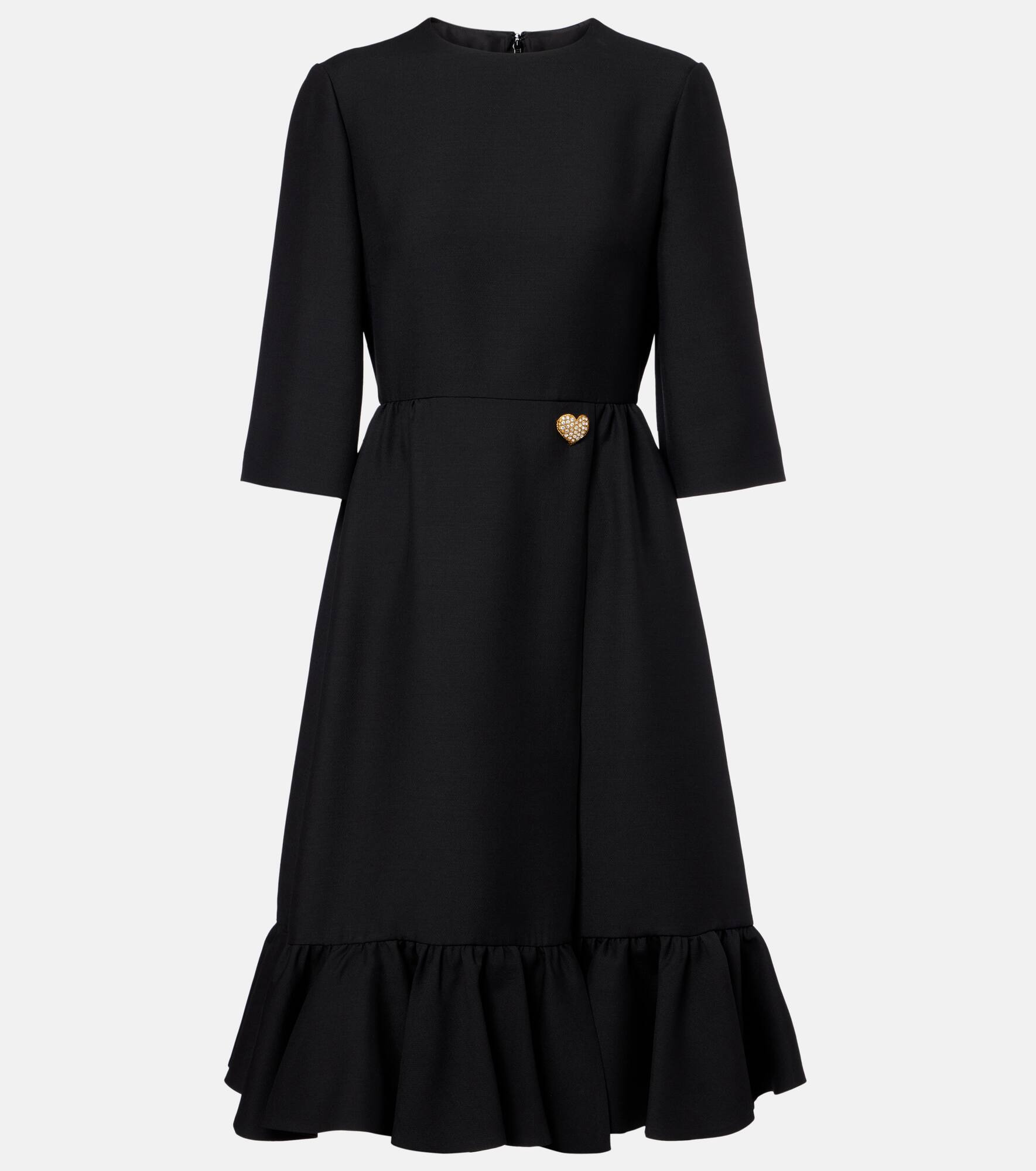 Valentino inspires individuality and redefines the values of craftsmanship and beauty deeply rooted in its storied heritage. Crafted from signature Crepe Couture, this sophisticated midi dress features ruffled cuffs for a chic touch. Product Details - Material: 65% wool, 35% silk - Care instructions: dry clean - Made in Italy - Designer color name: Nero - Item color: black - Lining: 100% silk - Closure: zipper, hook fastening - Short vent - Item number: P01060164 Size & Fit - True to size - Cinched waist - Non-stretchy fabric - The model seen in the picture is 178cm-5'10" and wearing a size IT 40