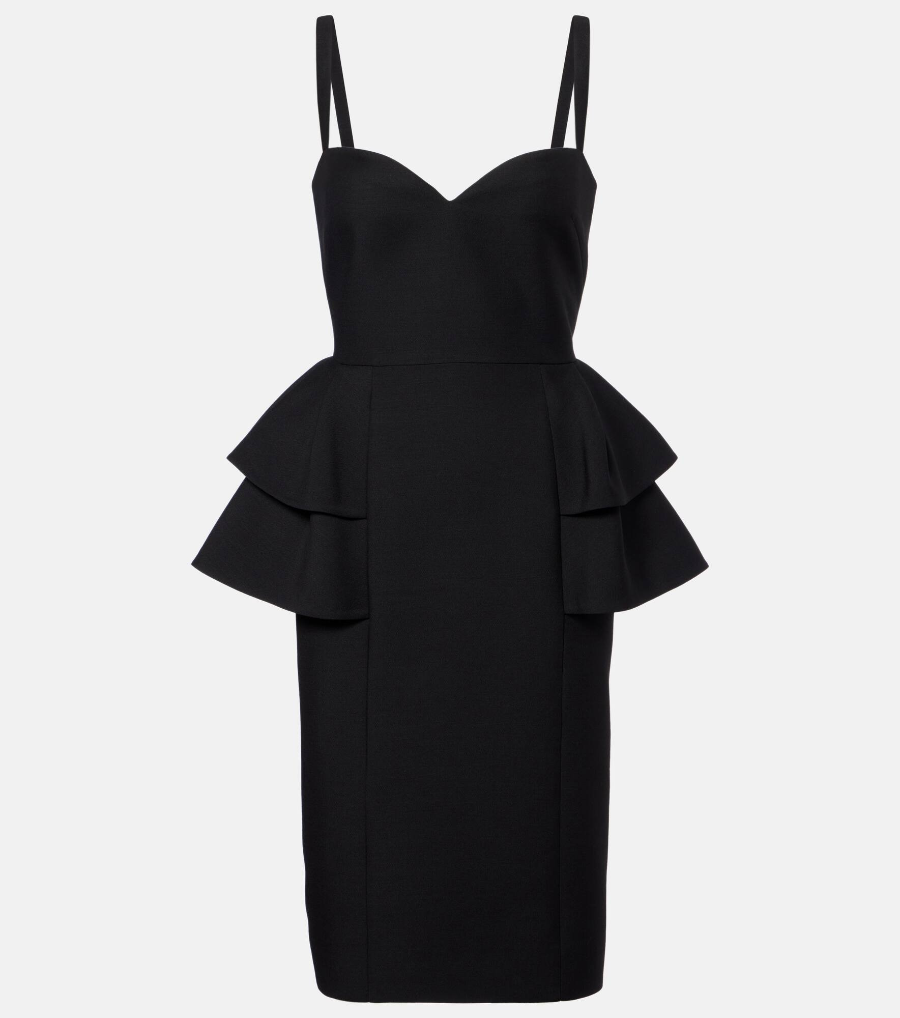Crafted from Crepe Couture—a luxurious blend of virgin wool and silk—this Valentino midi dress exudes elegance and sophistication with a hint of allure. The design features a sweetheart neckline, slim straps, and a tiered bodice. Product Details - Material: 65% virgin wool, 35% silk - Care instructions: dry clean - Made in Italy - Designer color name: Nero - Item color: black - Lining: 100% silk - Closure: invisible zipper - Includes: garment bag - Item number: P01060199 Size & Fit - Fits large to size - we recommend trying one size smaller - Cinched waist - Non-stretchy fabric - slit length 22cm-8.5" - The model seen in the picture is 178cm-5'10" and wearing a size IT 38