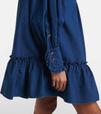 This Valentino denim minidress is designed for a relaxed fit with dropped shoulders, capturing the house's signature effortless elegance. Its timeless design effortlessly blends casual sophistication with a contemporary, laid-back appeal for modern styling. Product Details - Material: 100% cotton - Care instructions: machine wash at 30 degrees - Made in Italy - Designer color name: Medium Blue Denim - Closure: button fastening - Buttoned cuffs - Item number: P01006474 Size & Fit - True to size - Dropped shoulders - Designed for a loose fit - Non-stretchy fabric - The model seen in the picture is 178cm-5'10" and wearing a size IT 40