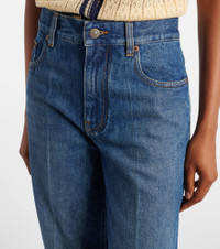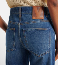 Valentino reimagines everyday denim with elevated craftsmanship and modern elegance. These straight-leg jeans feature a flattering mid-rise silhouette and are finished with a charming heart-shaped embellished detail for a chic touch. Product Details - Material: 100% cotton - Care instructions: hand wash - Made in Italy - Designer color name: Denim Scuro - Item color: blue - Details: 100% leather - Contains non-textile parts of animal origin - Lining: 69% polyester, 31% cotton - Pockets: five pockets - Belt loops - Fit: wide-leg - Item number: P01059780 Size & Fit - True to size - Non-stretchy fabric - Straight leg - Mid-rise - The model seen in the picture is 178cm-5'10" and wearing a size 26