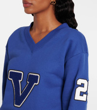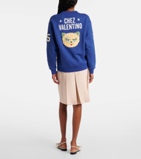 The most established Italian Maison de Couture, Valentino has become a symbol of crafting excellence, creativity, and uniqueness. This sweatshirt is made from cotton jersey and features an intricate embroidery. Product Details - Material: 100% cotton - Care instructions: hand wash - Made in Italy - Designer color name: Blue/Avorio - Item color: blue - Material II: 98% cotton, 2% elastane - Material III: 50% acrylic, 50% wool - Material IV: 100% polyester - Embroidery: 100% polyester - Collar: V-neck - Hem: ribbed - Item number: P01059844 Size & Fit - True to size - Dropped shoulders - Designed for a loose fit - Non-stretchy fabric - Falls to the hip - The model seen in the picture is 178cm-5'10" and wearing a size XS